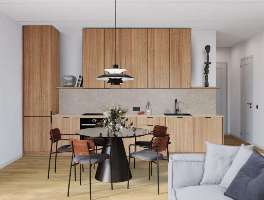 Mit dem exklusiven Home Designer-Tool können Käufer jedes Detail individuell gestalten – von Bodenbelägen und Wandoberflächen bis hin zu Küchenfronten und Arbeitsplatten – und so ein wirklich hochwertiges, maßgeschneidertes Zuhause kreieren. Die Wohnanlage umfasst 24 lichtdurchflutete Wohnungen, die von smarten Studios bis zu großzügigen Vierzimmerwohnungen reichen. Jede Einheit verfügt über flexible Grundrisse, bodentiefe Fenster und private Außenbereiche wie Balkone oder Terrassen – mit grünen Ausblicken und reichlich Tageslicht.
