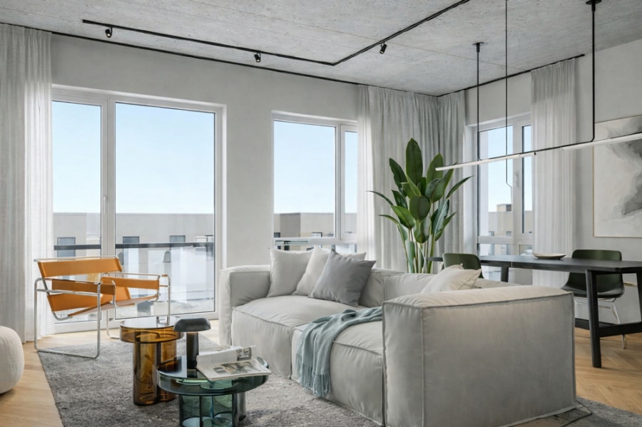 Mit dem exklusiven Home Designer-Tool können Käufer jedes Detail individuell gestalten – von Bodenbelägen und Wandoberflächen bis hin zu Küchenfronten und Arbeitsplatten – und so ein hochwertiges, maßgeschneidertes Zuhause schaffen. Die Wohnanlage umfasst 24 helle Wohnungen, die von smarten Studios bis zu großzügigen Vierzimmerwohnungen reichen. Jede Einheit verfügt über flexible Grundrisse, bodentiefe Fenster und private Außenbereiche wie Balkone oder Terrassen – mit grünen Ausblicken und reichlich Tageslicht.