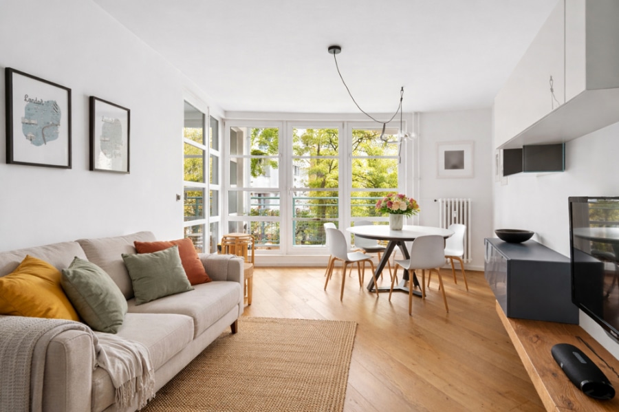 ✅ Helles Wohnzimmer mit großem privaten Balkon