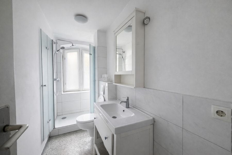 The apartment itself features two bright and well-proportioned rooms, situated in a well-maintained Altbau (pre-war building) right next to a garden allotment area. This ensures a particularly quiet and green living environment – ideal for anyone looking for peaceful living with quick access to the city center.
