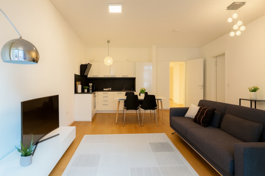 This elegant two-room apartment offers contemporary luxury in one of Berlin’s most established neighbourhoods. Located on the second floor, the residence impresses with an intelligent layout, floor-to-ceiling windows, and a private balcony that opens to tranquil surroundings. Premium finishes, such as oak parquet flooring with underfloor heating, designer bathroom fixtures, and refined detailing throughout, ensure a living experience defined by quality and comfort.