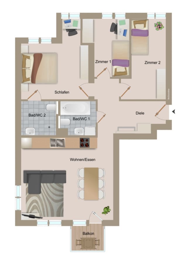 Vacant! Modern 4-room apartment with 2 balconies in trendy Kreuzkölln