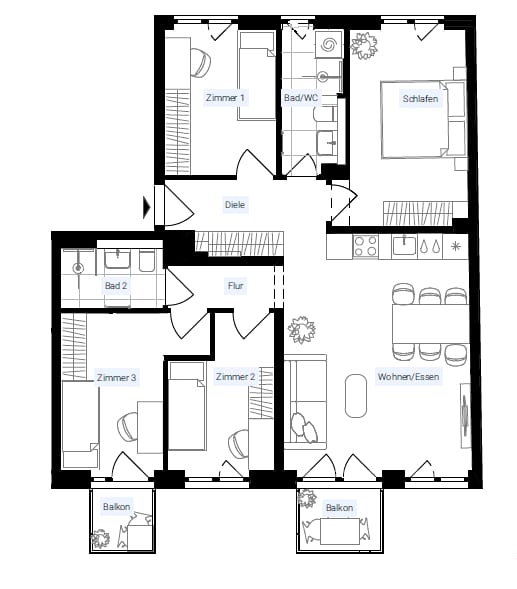 Modern comfort: 5-room apartment with loggia in trendy Dreiländereck