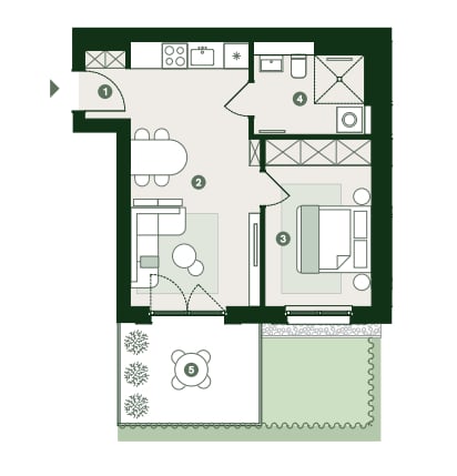 The development offers a mix of smart city apartments and larger family layouts, all with premium finishes such as oak floors, large-format tiles, and branded fittings. A supermarket and cafés on the ground floor bring everyday convenience to your doorstep, while the green inner courtyards provide space to pause and unwind.