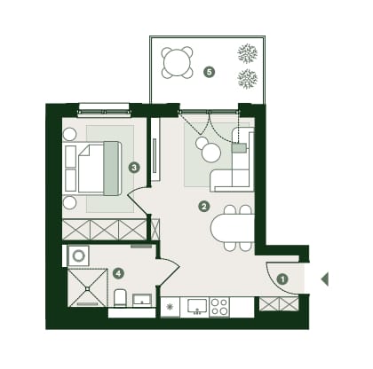 The development offers a mix of smart city apartments and larger family layouts, all with premium finishes such as oak floors, large-format tiles, and branded fittings. A supermarket and cafés on the ground floor bring everyday convenience to your doorstep, while the green inner courtyards provide space to pause and unwind.