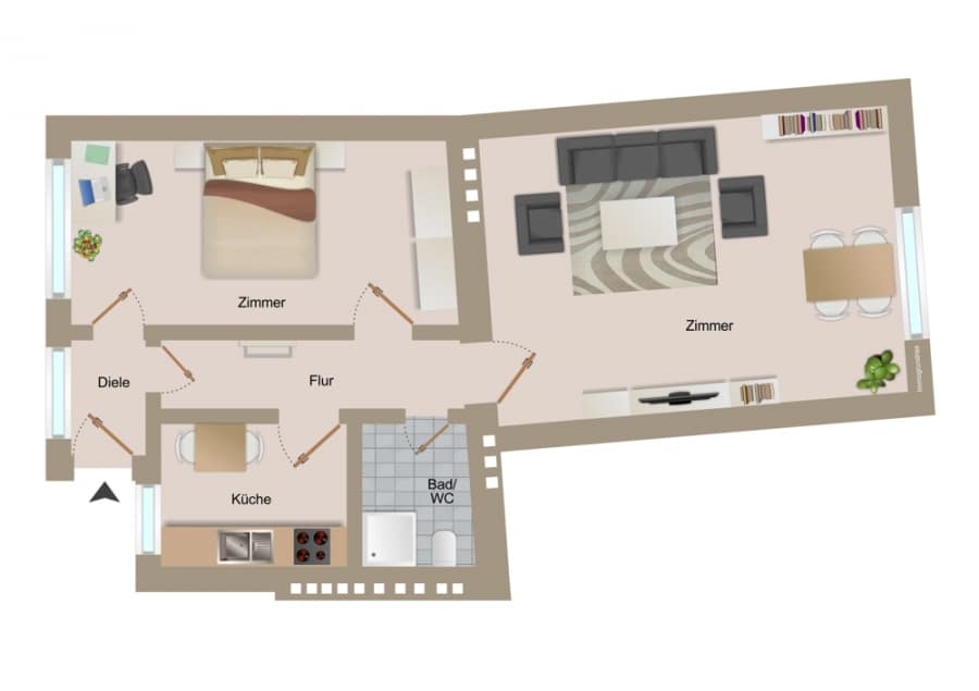 ✅ Attractive one-bedroom layout