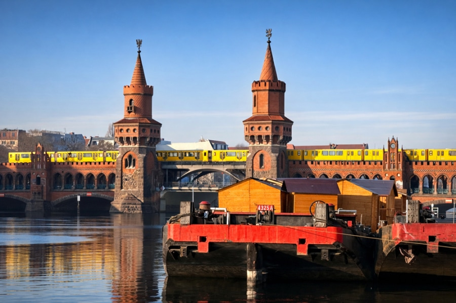 The property is situated in the lively Friedrichshain district of Berlin, known for its mix of culture, gastronomy, and creative energy. Daily shopping needs are well covered, with the nearby East Side Mall offering a wide selection of shops, supermarkets, and services within easy walking distance.