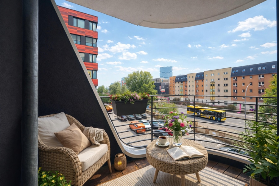 This well-designed two-room apartment with a balcony is located in the modern The White development, directly on the banks of the River Spree. The apartment offers contemporary living with a strong connection to its surroundings, combining water views, urban convenience, and green spaces in one of Berlin’s most desirable neighbourhoods.