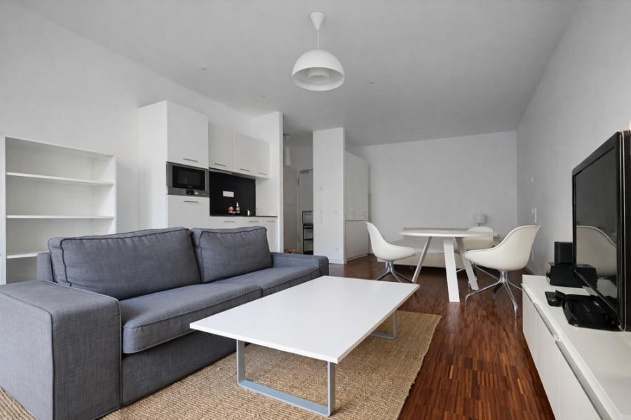 This attractive studio apartment for sale is situated on the 4th floor of a well-maintained residential building with a lift, in the popular Chausseestraße area of Berlin. The apartment is offered fully furnished, making it a perfect turnkey option for owner-occupiers, city pied-à-terre buyers, or investors seeking an easy-to-let property in a central location.