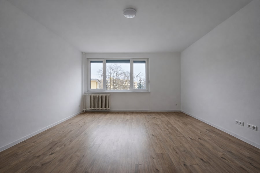 The apartment impresses with a bright and welcoming living room, filled with natural light and offering a pleasant, open living atmosphere. There is ample space for both relaxation and dining, making it a versatile area for everyday living and entertaining. The bedroom serves as a quiet and comfortable retreat, providing enough room for flexible furnishing solutions such as wardrobes, a work area, or additional storage.