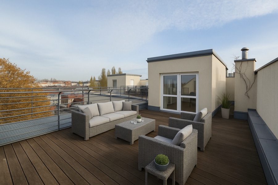 Split-Level Penthouse with 3 Rooms, Skyline Views, Terraces & Parking in Friedrichshain