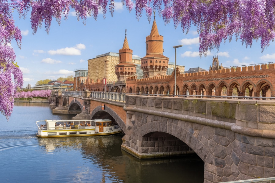 Located in East Berlin, Friedrichshain is a lively and trendy district reminding of Berlin’s Soviet past of the city. The Karl-Marx Allee, linking Alexanderplatz to Frankfurter Tor, offers a striking example of Stalinist architecture with its impressive dimensions. It is also a verdant area, especially the Volkspark, famous for its barbecue areas and the outdoor cinema. The area many shops, bars and restaurants around the Boxaghener Platz, famous for its flea market. The RAW, a cultural and alternative place, consists of former hangars converted into workshops, restaurants, sports halls, bars and clubs. Along the Spree, the former Berlin Wall has become an open-air art gallery, the East Side Gallery, hosting paintings by international artists. For several years now, this area has been experiencing real estate expansion. Several international companies, including Zalando, have established their headquarters in the neighbourhood.