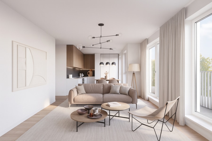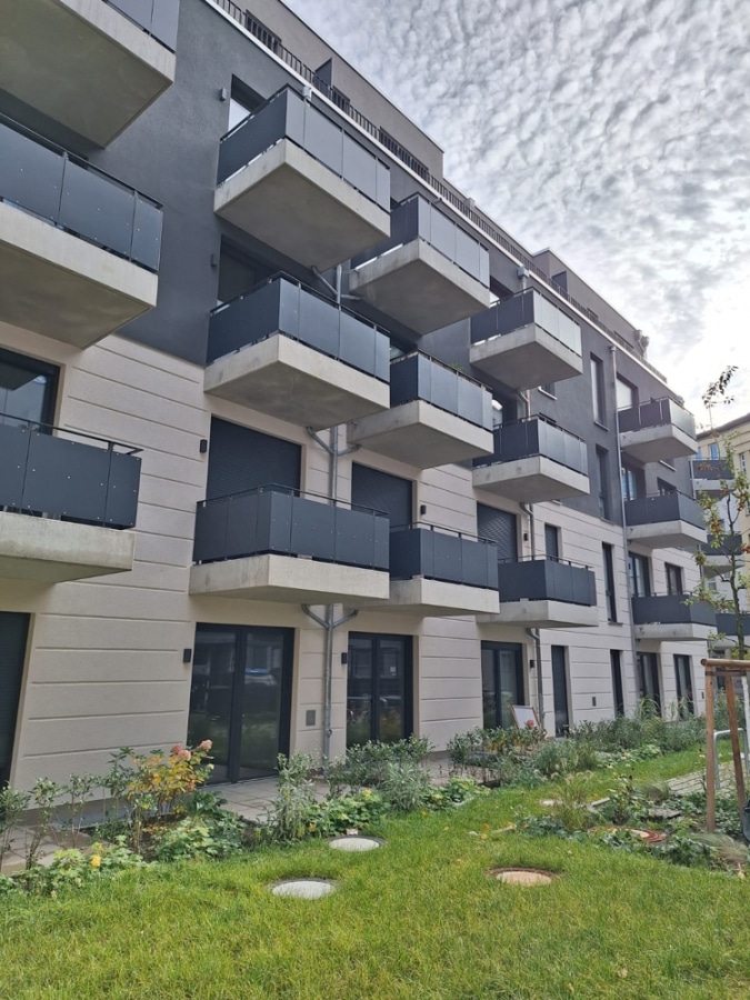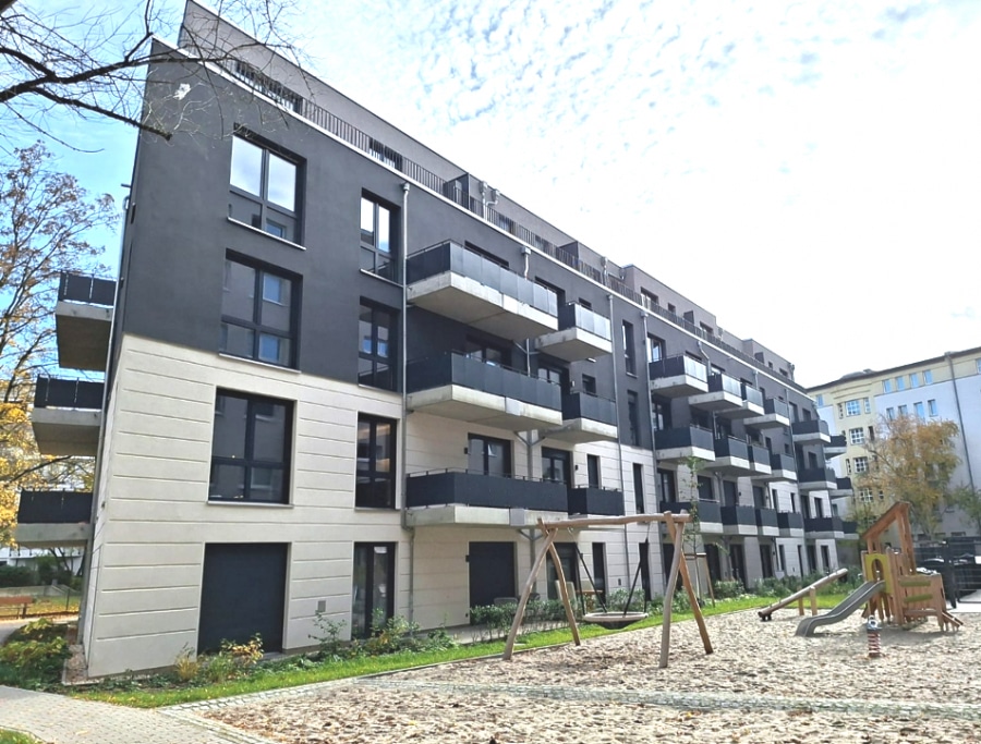 The building boasts a green inner courtyard and outdoor areas that offer plenty of space for neighborly get-togethers. Children can let off steam on lovingly designed playgrounds, while ample bicycle parking spaces in the building and in the courtyard enable sustainable mobility in the city. The apartments impress with real wood parquet flooring, underfloor heating for a cozy indoor climate and selected design elements in the bathrooms. The new building with a total of 91 apartments offers 1-4 room apartments with efficient floor plans, easily accessible by elevator.