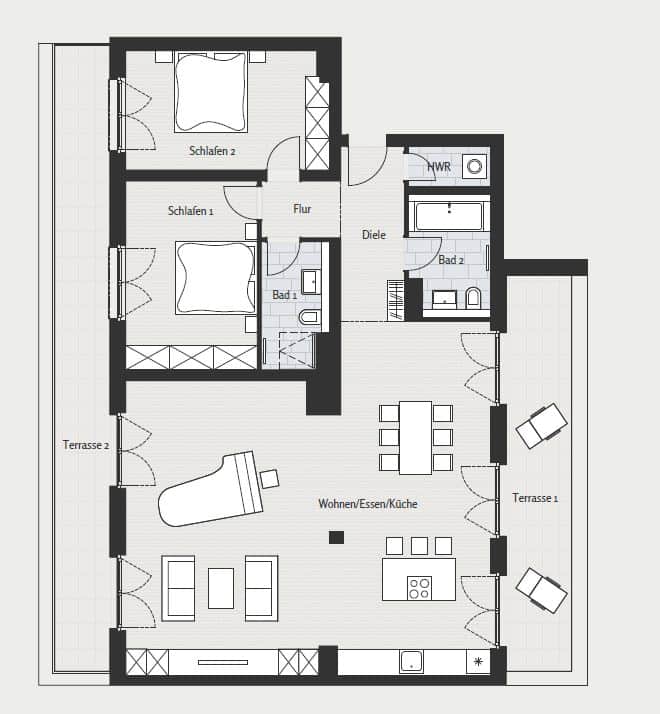 Premium fixtures such as high-quality oak parquet flooring, large doors, floor to ceiling windows and underfloor heating offer a feeling of both relaxing and prestige living. Bathrooms are equipped with both showers and bathtubs and are made of premium materials. The landscaped garden combined with spacious loggias, terraces and balconies offer a unique living experience in the heart of Berlin!
