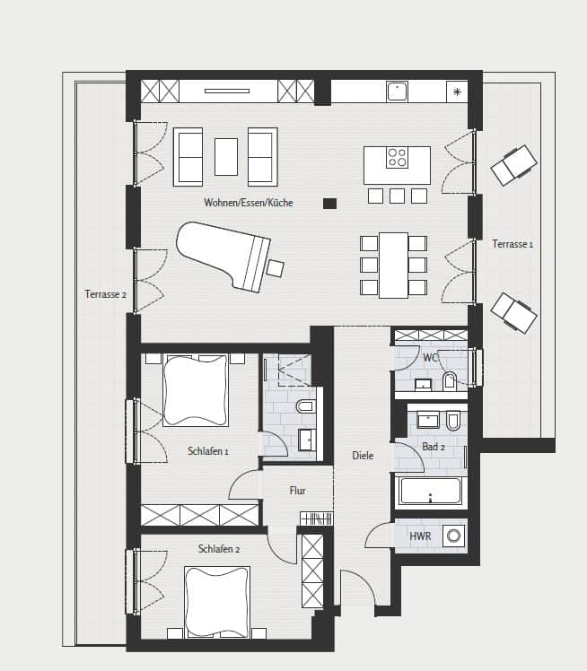 Premium fixtures such as high-quality oak parquet flooring, large doors, floor to ceiling windows and underfloor heating offer a feeling of both relaxing and prestige living. Bathrooms are equipped with both showers and bathtubs and are made of premium materials. The landscaped garden combined with spacious loggias, terraces and balconies offer a unique living experience in the heart of Berlin!
