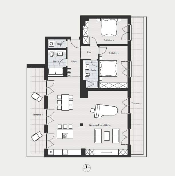 Premium fixtures such as high-quality oak parquet flooring, large doors, floor to ceiling windows and underfloor heating offer a feeling of both relaxing and prestige living. Bathrooms are equipped with both showers and bathtubs and are made of premium materials. The landscaped garden combined with spacious loggias, terraces and balconies offer a unique living experience in the heart of Berlin!